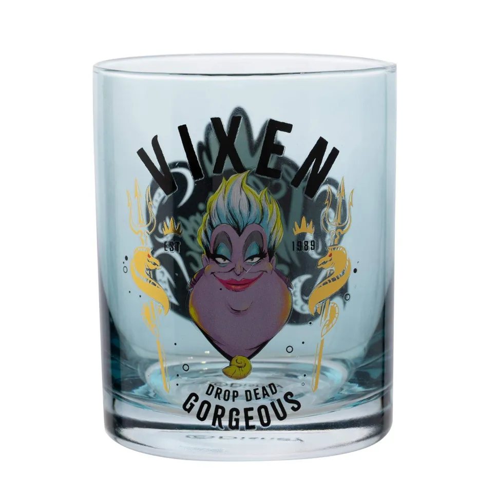 The blue glass showcases a shiny finish, complete with printed image of the Ursula from The Little Mermaid and ‘Vixen – Drop Dead Gorgeous’ title. On the opposite side sits a complementary silhouette image alongside ‘Wreaking Havoc’ wording.