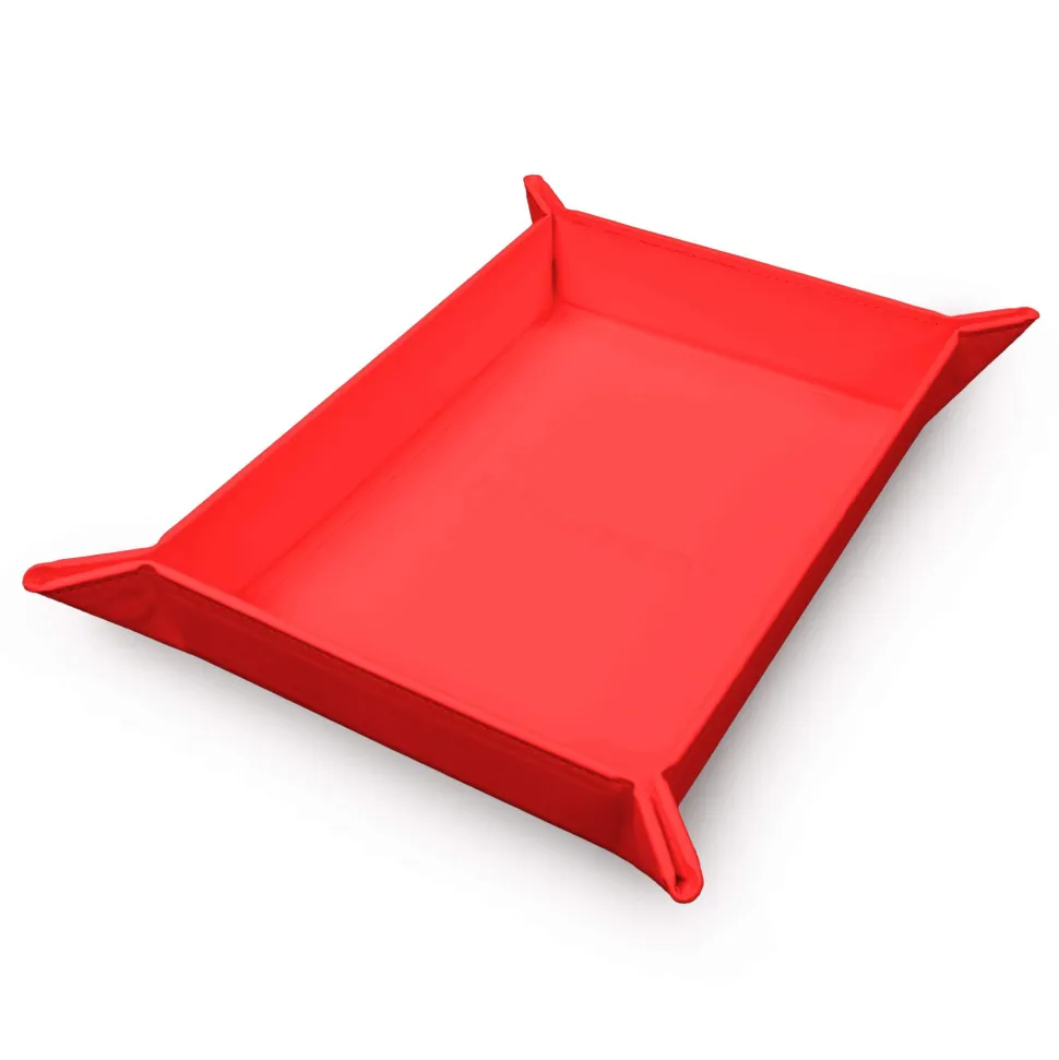 The Vivid Magnetic Foldable Dice Tray offers a safe and portable space for all your dice rolling needs. These trays are no bigger than a sheet of paper (8.5 in. x 11 in.) when folded flat, and utilize small magnets in each corner so you can quickly pop up the side walls, perfect for keeping stray dice contained when rolling. Simply unfold the magnetic dice tray again to store it in your backpack, character folio, binder, or favorite board game box. Featuring a soft leatherette material in one of the Vivid Collection’s signature bright colors, there is a dice rolling tray for every gamer!