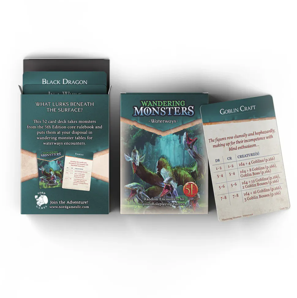 This innovative expansion deck contains 52 cards, each with 3-5 possible encounters for water environments for the 5th Edition. Pick the encounter based on the appropriate challenge rating, or roll a die. Order your monster expansion pack today to add exciting new monsters to the waterways of your tabletop RPG games.