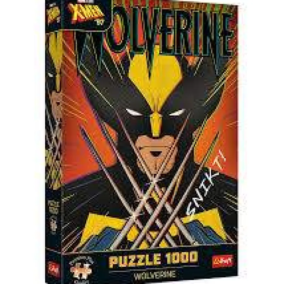 Once all the tiles are joined, they form an image of 683 x 480 mm, depicting the Wolverine cartoon silhouette.