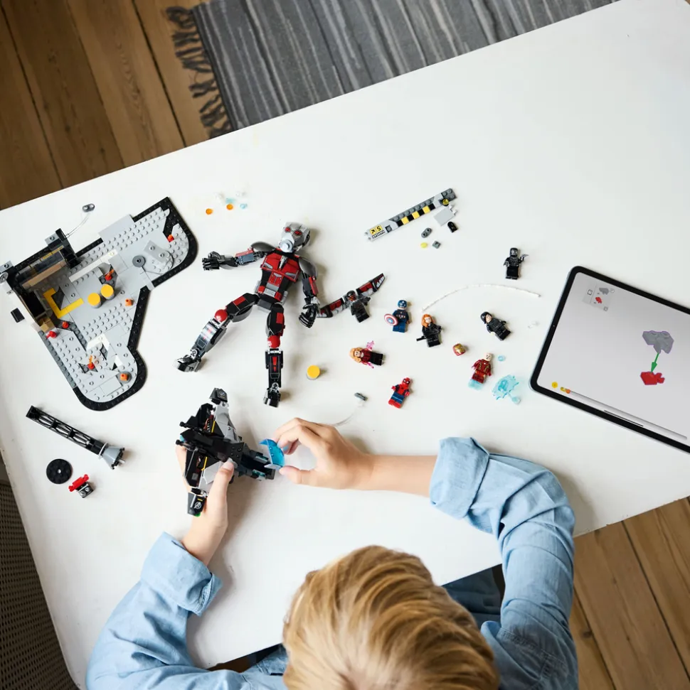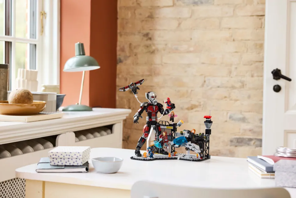 - LEGO® Marvel figurer – inkluderer en fullt bevegelig LEGO figur av Ant-Man og åtte minifigurer: Captain America, Winter Soldier, Wanda, Falcon, Iron Man, Spider-Man, Black Widow og Black Panther