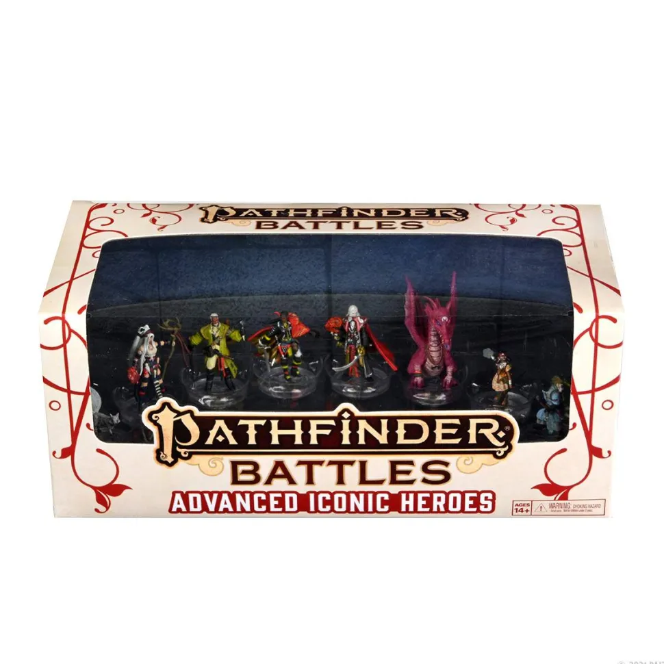 Pathfinder Battles: Advanced Iconic Heroesincludes 8all-new miniatures featuring famous personalities from the Pathfinder Second Edition Jirelle, Korakai, Feiya,Daji,Quinn,Seltyiel, Ija, and Tukujoining the ranks of Pathfinder Iconics!. Each of these miniatures is an all-new sculpt and will feature a dynamic pose, incredible detail, and a premium paint job.
