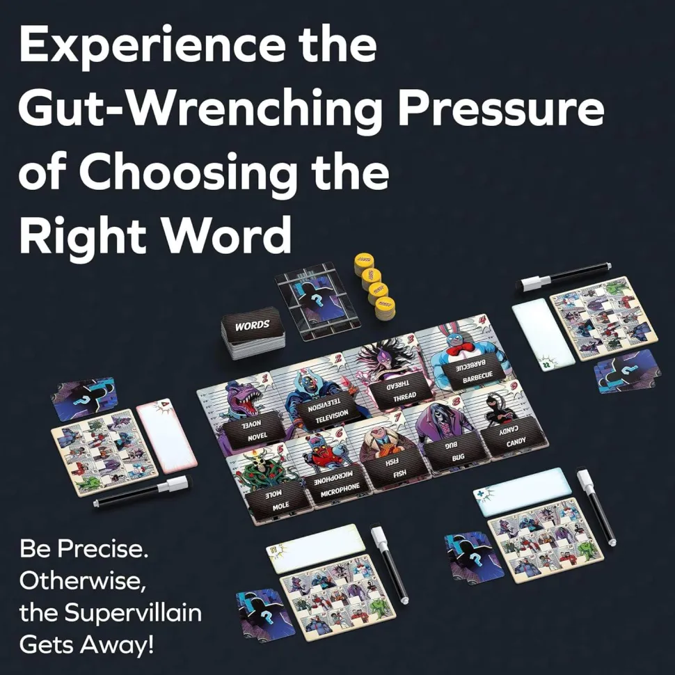 At the start, each player secretly receives two innocent suspects. If everyone connects both characters with the same one-word clue, you’ve caught the culprit! But beware: one wrong hint and you might accuse someone else’s villain instead. It’s a delicate balance of deduction, teamwork, and strategic misdirection.