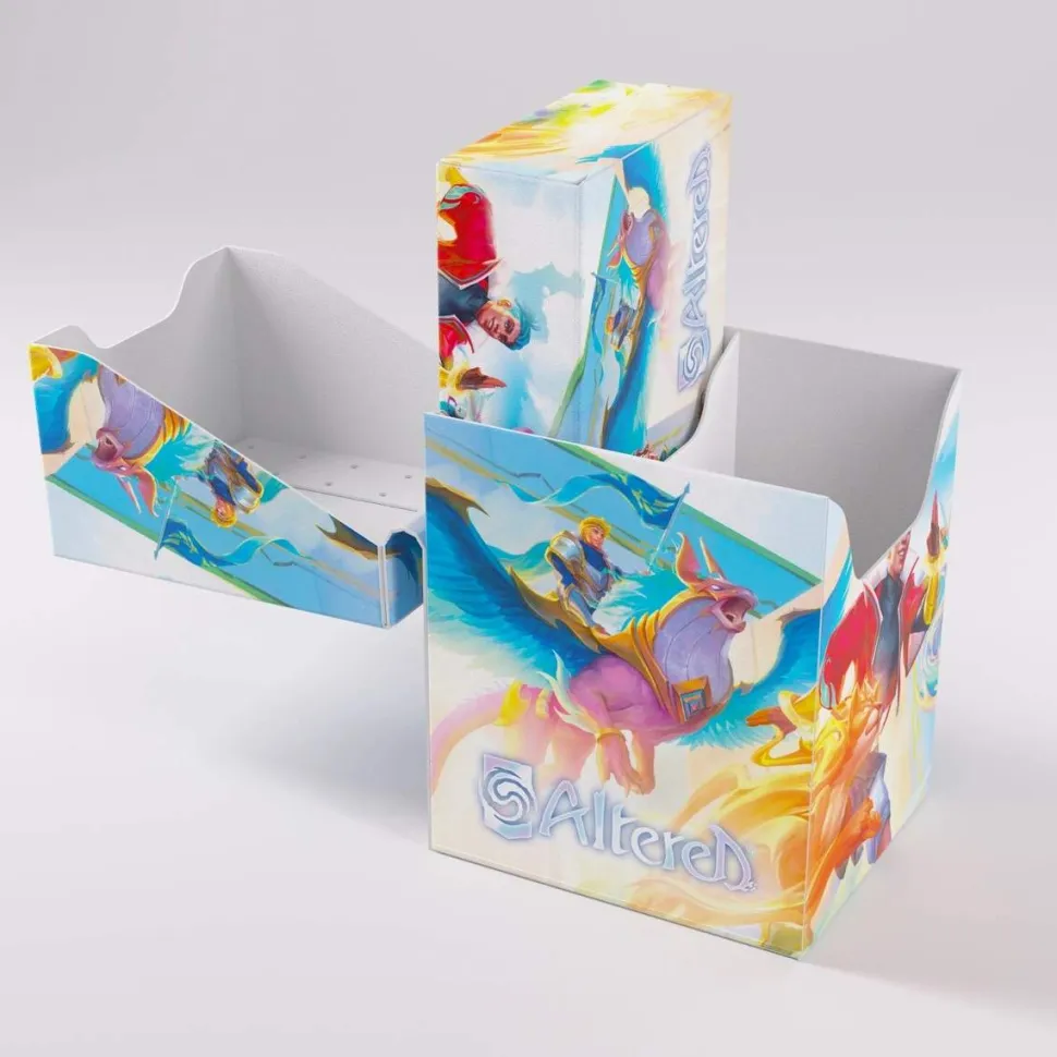 The Altered® Expedition Soft Box is the all-in-one casual solution for players of the highly awaited TCG. This full color printed and officially licensed deck box is packed with ingenious features. It protects a full double-sleeved deck of cards and includes an innovative token box! This token box has a smart click-lock mechanism to keep all tokens safely stored – even while pulling it out. Once opened, the lid of the box stays upright for convenient access during gameplay. The Expedition Soft Box is equipped with Gamegenic’s very own Cobra Neck-Technology: the lid can be opened more than 180° for easy access. Additionally, it comes with a self-locking lid and write-on-strip. The separator inside ensures that the deck stays in place, even when the token box is taken out. The Altered® Expedition Soft Box comes in two amazing designs from the game and is a must-have for all Altered®, TCG, and LCG players.