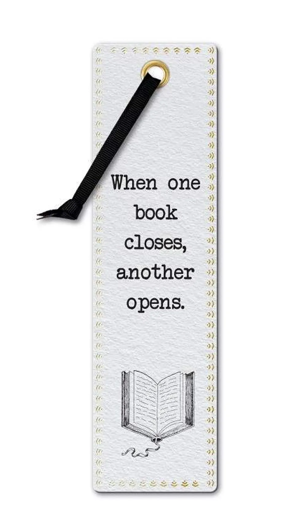 Bokmerke «Another Opens» i Literary Collection i kraftig kvalitetskartong med tekstilbånd. Bokmerket er trykket på FSC MIX Paper C134008.
