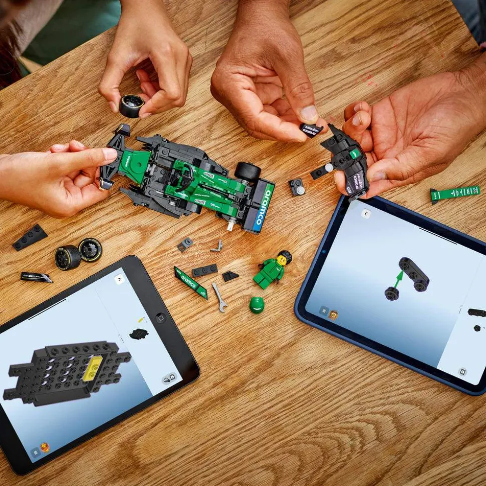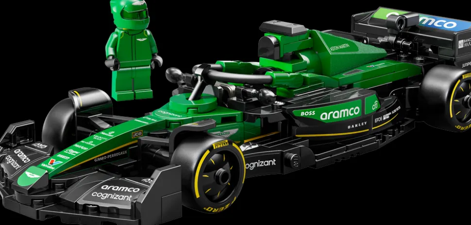 - En minifigur – kjøretøysettet inkluderer en sjåførminifigur med Aston Marin Aramco F1®-drakt og hjelm med vinge, som barn kan plassere i førersetet for å arrangere actionfylte rollelek-løp