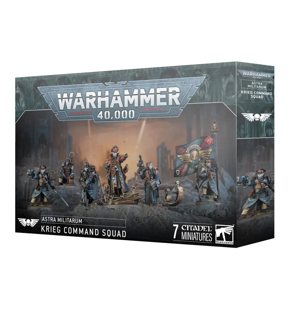 Krieg Command Squads are led by representatives of the Officio Prefectus, most commonly a high-ranking Commissar, assisted by a retinue of veterans and junior officers. They lead from the front and will often be found in the thickest fighting.