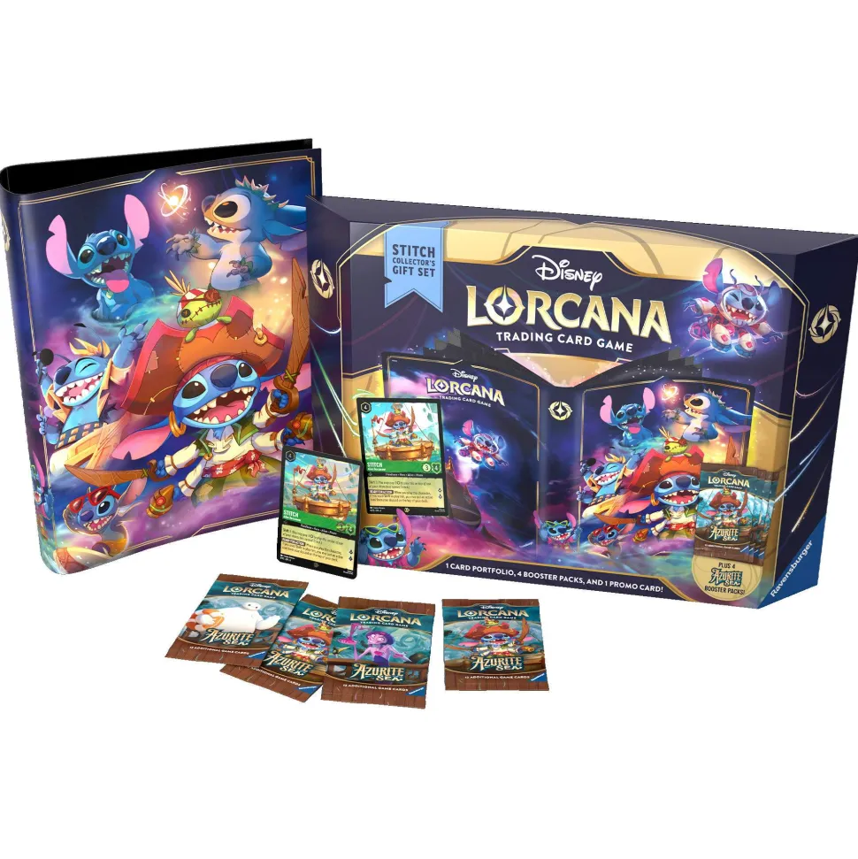 For the true Stitch fan, this collector’s gift set offers a bounty of ways for players to bring more of their favorite mischievous alien to their game! The unique portfolio covered in Stitch glimmers is perfect for storing treasures like this foil Stitch promo card, which shines with a special water-like treatment. Also included are 4 Azurite Sea booster packs that will add nearly 50 cards to a player’s collection. Who knows what glimmers they’ll find?