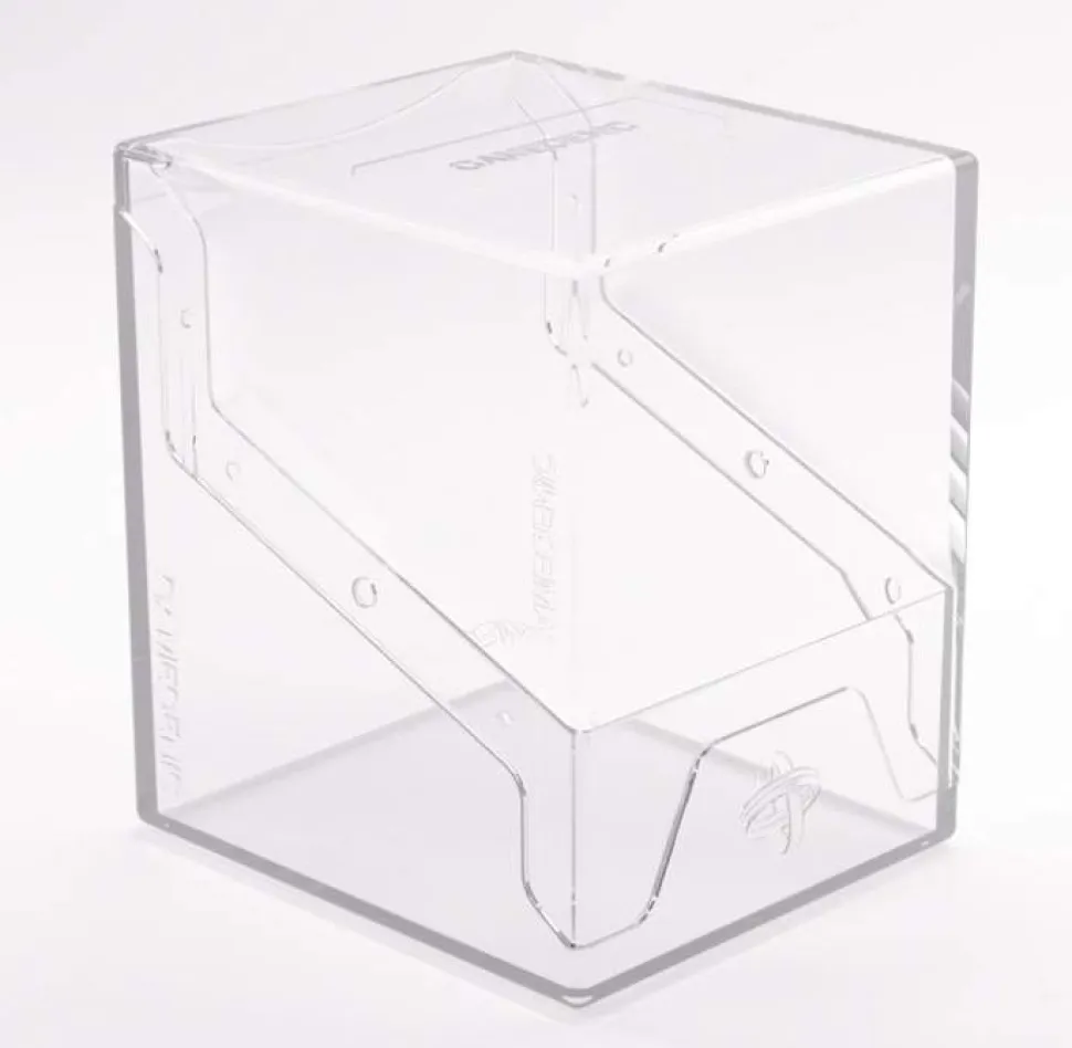 “If you’re gonna stand, stand like a Bastion!”– The Bastion 100+ XL is a very compact and rock-solid deck box to safely protect 100+ double-sleeved cards in Thick Inner Sleeves. Due to translucent materials and smart positioning of the closing flaps, the top or Commander card is fully visible from the outside without opening the box. The innovative secure click-lock mechanism protects your deck while still allowing easy access. The Bastion consists of 2 symmetrical parts that easily convert into a card pile and discard pile holder. It is perfect for a huge variety of trading card games. Thanks to its modular design, the Bastion fits perfectly into other Gamegenic products. It also comes with a write-on sticker for personalization. The Bastion is available in 10 different colors, including an exclusive mix & matched black/clear version.