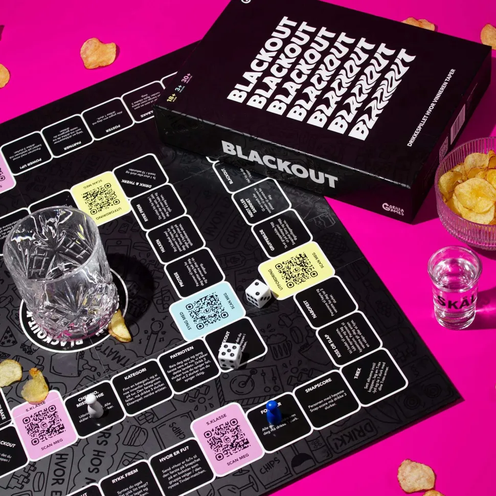 Lei av kjedelige vorspiel? Blackout spriter opp enhver kveld, med over 50 ruter med utfordringer som løfter både humøret og promillen! I tillegg har spillebrettet QR-koder som leder til over 200 nettbaserte minispill som blir oppdatert jevnlig slik at de aldri går ut på dato