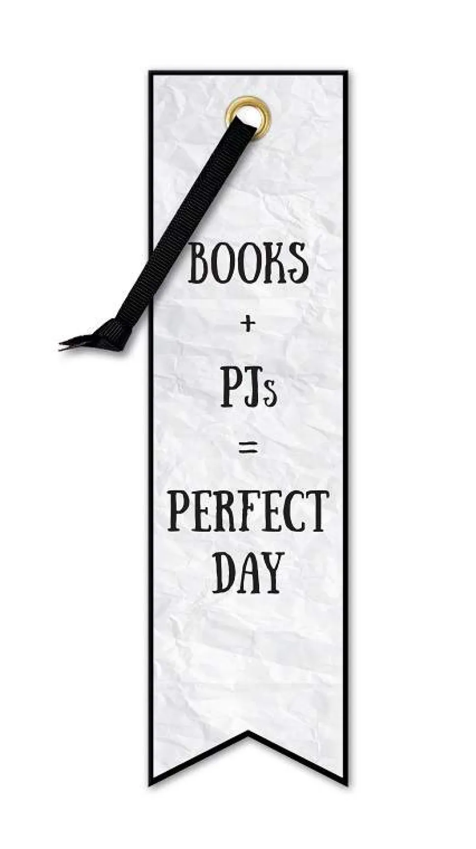Bokmerke «Books & PJs» i Literary Collection i kraftig kvalitetskartong med tekstilbånd. Bokmerket er trykket på FSC MIX Paper C134008.
