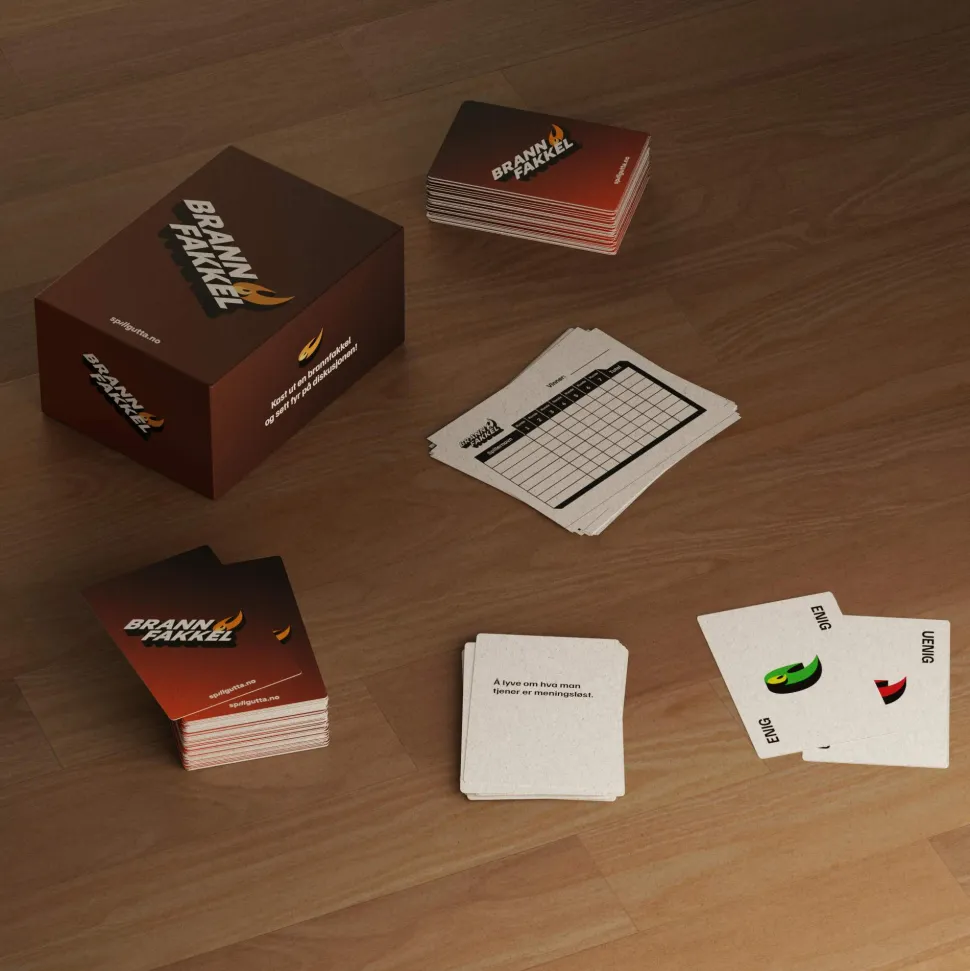 Brannfakkel er spillet hvor spillerne skal konkurrere i å presentere og forsvare sine meninger på ulike kontroversielle påstander. Dette spilletfunker like bra om du er to stykker eller om du ønsker å være 20 spillere. Diskuter og ha det gøy med de 280 ekstremt kontroversielle påstandene.