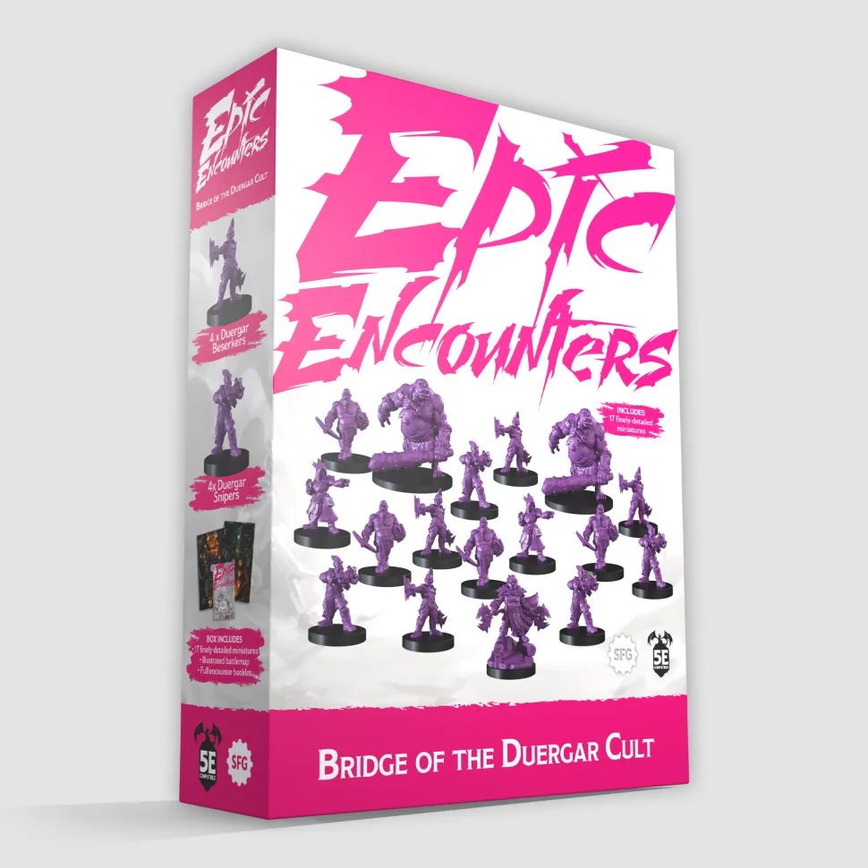Discover a complete, 5e-compatible adventure-in-a-box ready to unleash on your roleplayers. Whether you’re an experienced Game Master looking to save planning time, or a new Game Master, Bridge of the Duergar Cult includes everything you need to run cinematic roleplaying sessions for your players.