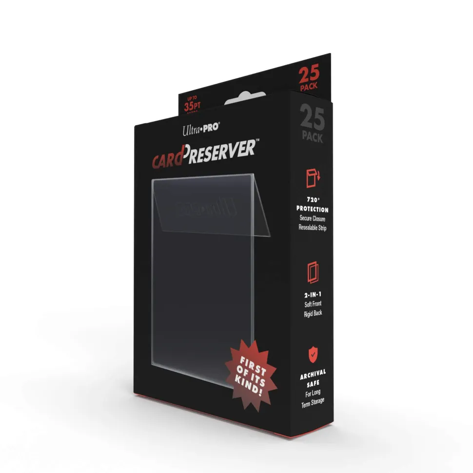 The Card Preserver is an archival safe sleeve with rigid backing and a soft poly front to protect your collectible cards! It is the perfect substitute for Toploaders and Semi Rigids is it is a single load action. The Card Preserver is perfect for long term storage or for graded card submission. It is ultra clear and scuff free.