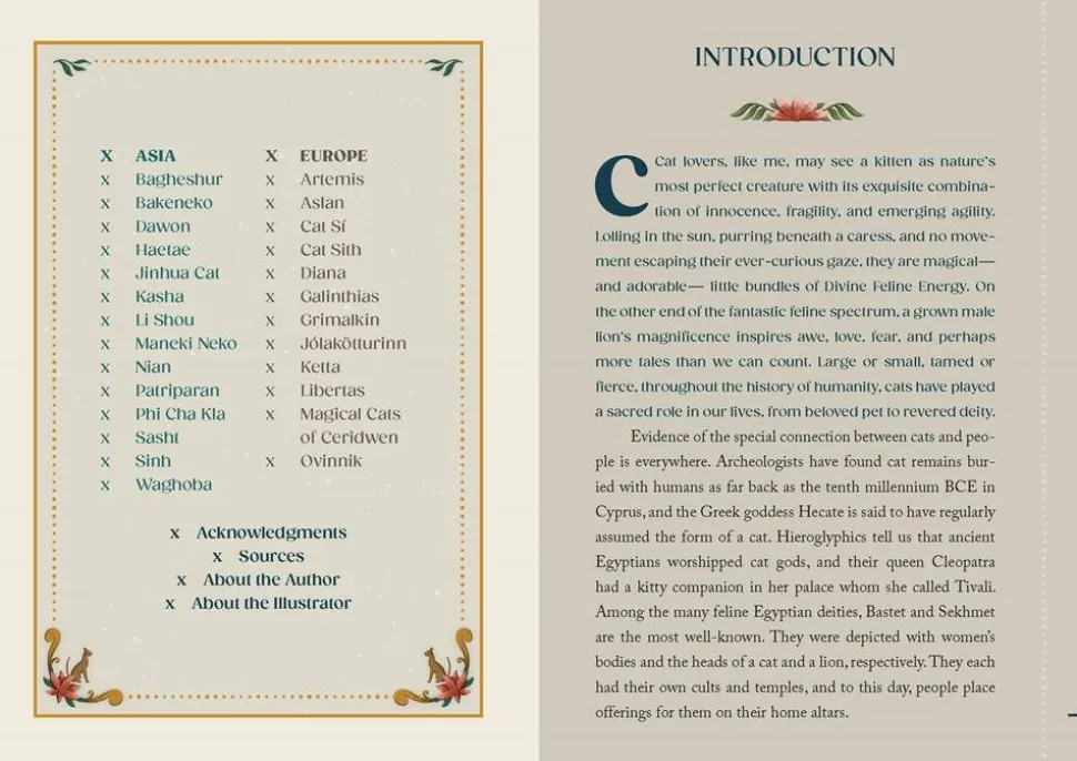 This book is more than a guide to ancient cat gods. It’s an exploration of the way humans have observed, interacted with, learned from, and revered another species who share the Earth with us. Ancient folklore is rife with examples of animal cunning and compassion, and many humans invoked other species as spiritual guides or flat out worshipped them as gods. Arguably, cats are the most intriguing of animals because of how we can relate to them. Much like us, they are free spirits and adaptable survivors. We admire them for their dignity, independence, and ferocity.