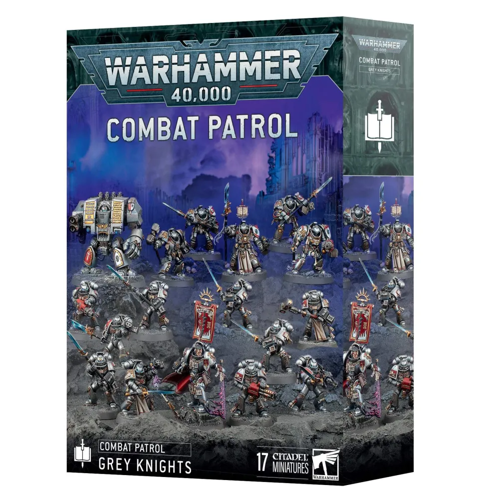 If you want to defend Humanity and keep the galaxy safe from the daemonic threat, this box is the perfect way to start a new Grey Knights collection – or expand an existing army – and save money compared to buying the kits individually. Castellan Crowe leads the force armed with the cursed Black Blade of Antwyr. Accompanying him is a Strike Squad equipped with a variety of weapons, and a Brotherhood Terminator Squad able to punch through even the toughest foes. A Venerable Dreadnought provides ranged support with its considerable firepower. These 17 plastic miniatures represent a complete Crowe’s Sanctifiers force for use in tight, tactical Combat Patrol games of Warhammer 40,000. The rules for this Combat Patrol are available as a free download on the Warhammer Community website.