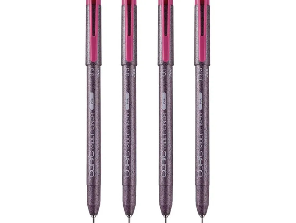 The Copic Multiliner Set Pink is a set of 4 high-quality pens with pigment-based ink. These disposable pens are resistant to water, light and alcohol-based markers, which makes them ideal for sketches and outlines that can later be colored with Copic markers.
