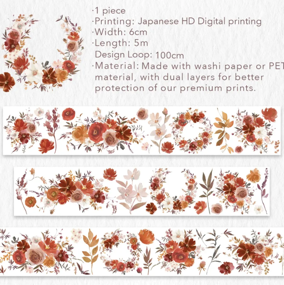 • Washi Tape: Made from translucent white paper with a soft, textured surface.