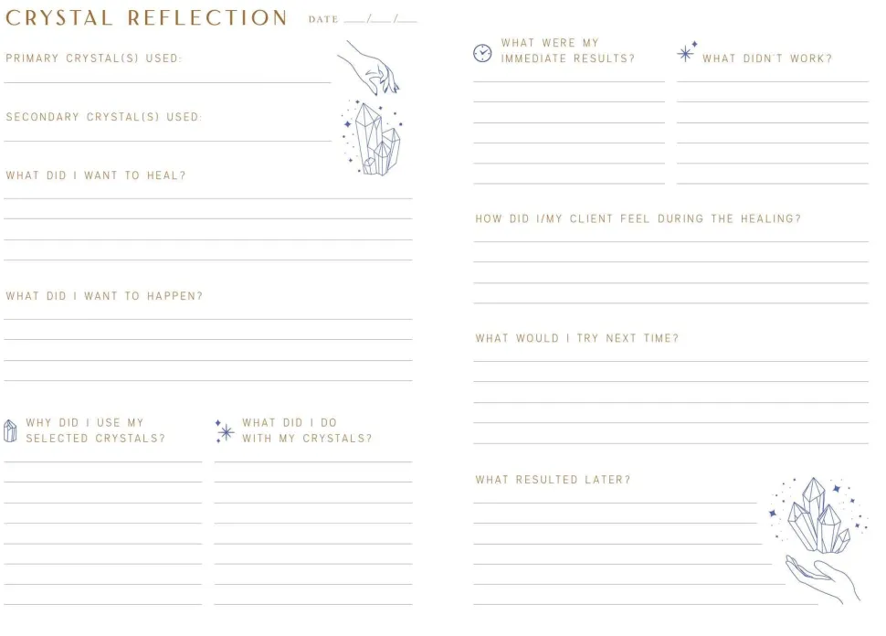 70 ENTRIES: Start your reflection journey at any time of the year with 70 entries for you to write down noteworthy moments from each crystal healing session