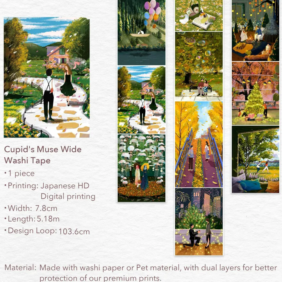 Meet our Cupid’s Muse Wide Washi/PET Tape—your new go-to for all things love and connection! This adorable tape captures the magic of couples spending quality time together, from dining under lush trees to joyfully running across open fields and cozy camping adventures.