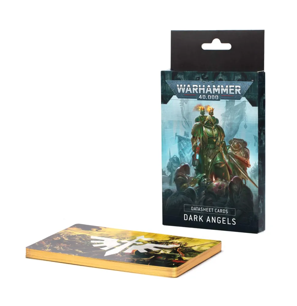 Dette settet med 20 kort hjelper deg med å holde oversikt over dine Dark Angels i spillet. Hvert kort er et datasheet for en enhet, som beskriver dens profiler, utstyr, alternativer og spesialferdigheter. Settet inkluderer også fire referansekort for å bruke Dark Angels i Combat Patrol-spill.