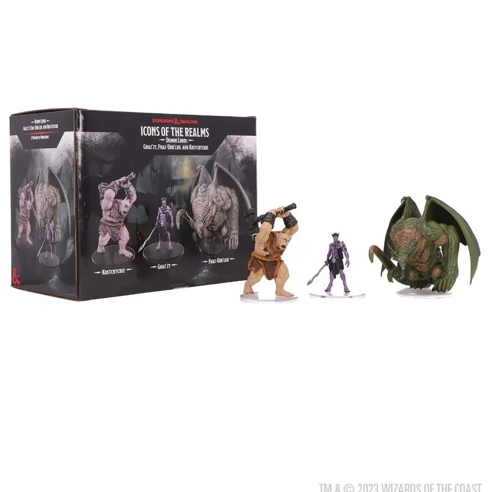 D&D Icons of the Realms:Demon Lords- Graz’zt, Fraz Urb’luu, and Kostchtchieis a collectable set of 3 highlydetailed pre-painted miniatures of some of D&D’s most well known Demonic Lords.