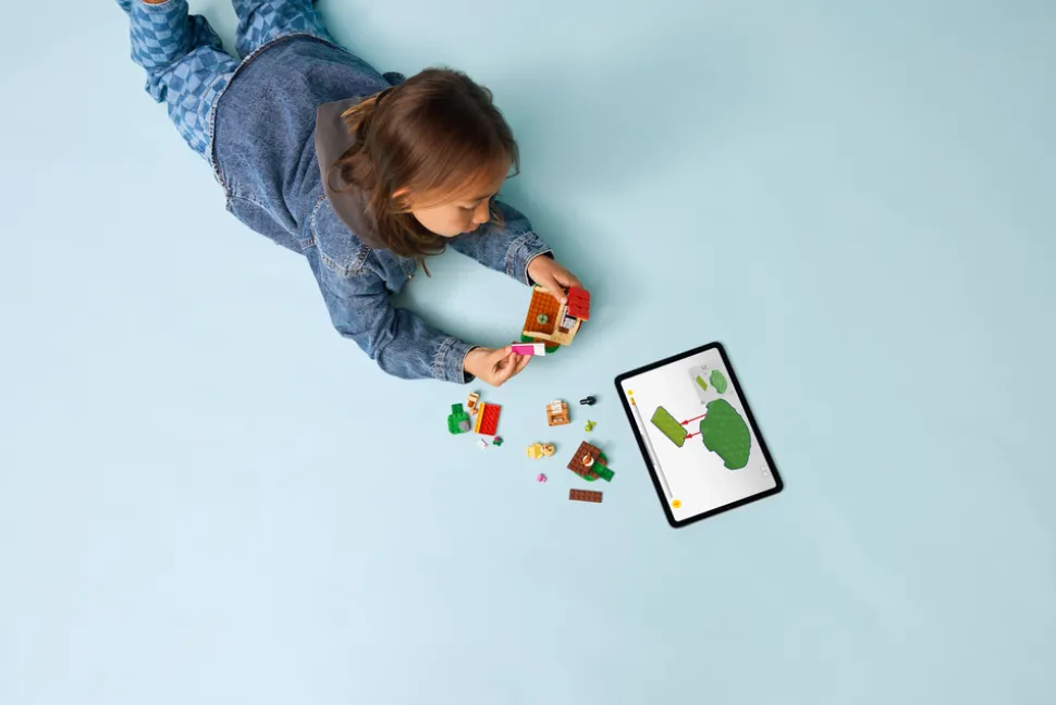 - Leke med en dyreminifigur fra dataspillet – settet inkluderer en minifigur av hunden Goldie, et byggbart hus med seng og piano samt et piknikbord og en postkasse utenfor