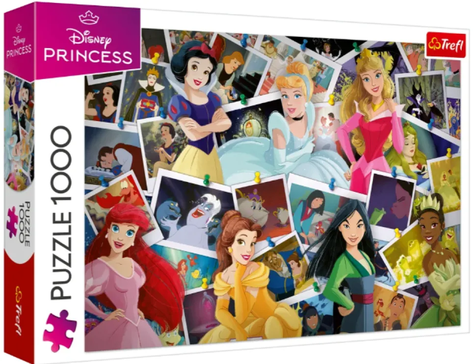 The 1,000-piece Disney Princess puzzle features a collage of Disney character designs.