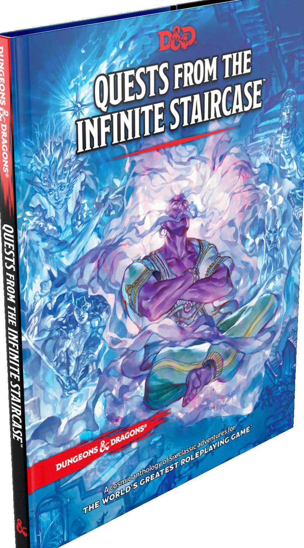 Quests from the Infinite Staircaseembraces the magic of the most beloved DUNGEONS & DRAGONS® adventures of all time. Your journey begins in the Infinite Staircase, a dreamlike expanse with doors leading to fantastical worlds, where you’ll meet Nafas, a noble genie who fulfills wishes with the help of valiant heroes—like you! As you explore what lies beyond each door, embark on timeless adventures and make memorable moments with your party.