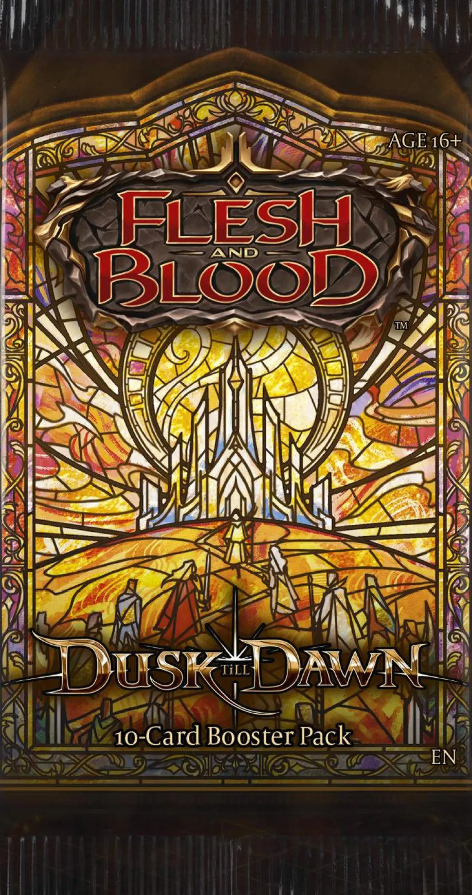 Dusk till Dawn is a 10-card booster pack that returns to the epic conflict between Light and Shadow. It features the return of fan-favourite Light Illusionist and Shadow Runeblade classes, whose predecessors have attained Living Legend status. As the 10th booster set, Dusk till Dawn marks a special milestone for Flesh and Blood. To celebrate, a new collection of Marvels have been crafted that eclipse anything that has come before. As sure as night follows day, Dusk till Dawn is a set for the ages.
