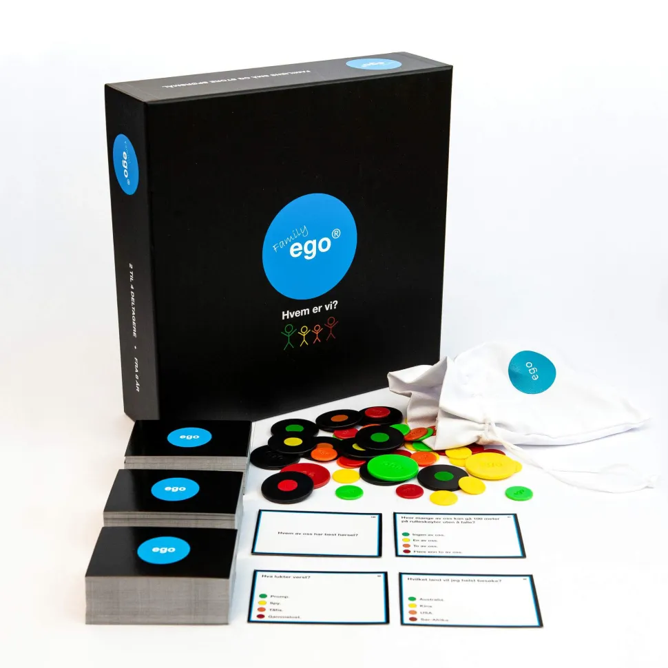 Så er det EGO til hele familien. Det klassiske EGO har endelig kommet i familieutgave. De gode spørsmålene, som familien sikkert aldri får stilt, kommer i spill og man kan bli en del klokere på seg selv og hverandre. Det er tre forskjellige typer spørsmål i spillet, som sikrer en masse morro, overraskelser og familiehygge. Vinner av Årets Familiespill hele 2 ganger!