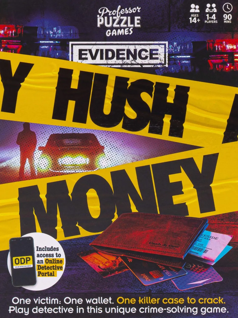 An unidentified body is discovered in a dark Chicago alley. The only evidence at the crime scene is the victim’s wallet …As the lead investigator, you’ll need to use the items inside the wallet to unlock clues on the Online Detective Portal and access further evidence – statements, photos, emails, social feeds, and more. Use both the physical and online evidence to identify the victim, discover the motive, and ultimately, reveal the killer.Evidence: Hush Money is murder mystery crime-solving game, combining physical components and an online progression system. Answer questions on the Online Detective Portal to advance through the game and uncover the murderer.—description from designer