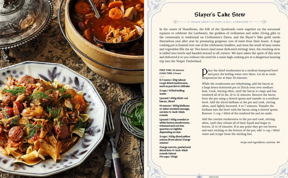 The recipes from these diverse dives are accompanied by the histories of each land—and stories of iconic culinary capers by Vox Machina, the Mighty Nein, Bells Hells, and more. Enjoy Percival de Rolo’s Revenge Pasta, stuffed with enough garlic to ward off even the strongest vampires, and blackberry and lemon hand pies inspired by Scanlan’s favorite spell. Prepare for battle with Jester’s Sweet Feast, a platter of pastries made complete with a dash of cinnamon and a covert sprinkle of the Dust of Deliciousness. And as the night comes to a close, settle down with Lord Eshteross’s Maple Ginger Cookies.