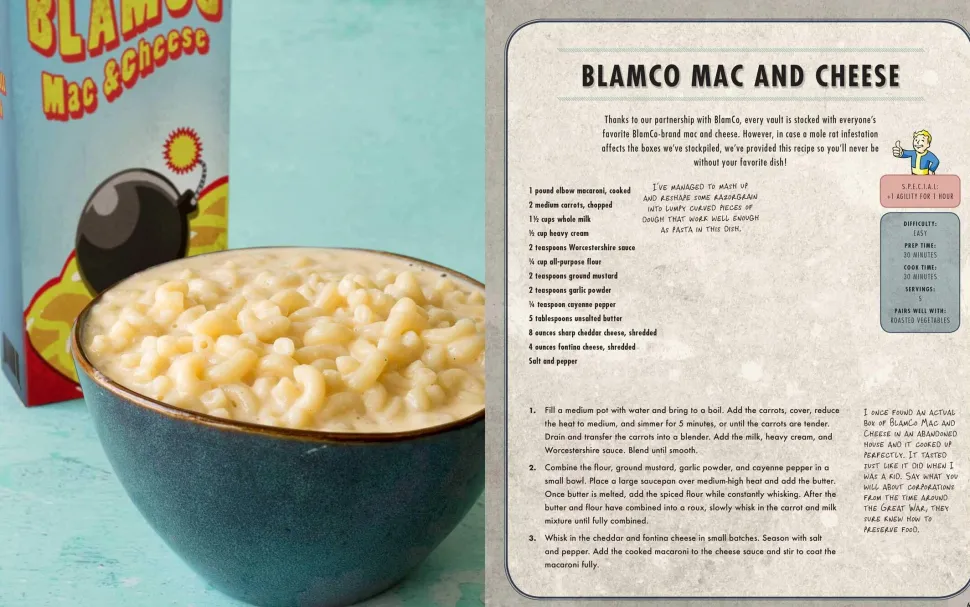 Based on the irradiated delicacies found in the award-winning Fallout video game series, this Vault-Tec™ approved cookbook provides fans of the game with over seventy recipes inspired by their favorite Fallout foods. Whip up tasty versions of Yum Yum Deviled Eggs, throw some deathclaw meat on the grill, and recreate BlamCo Mac & Cheese with Fallout: The Vault Dweller’s Official Cookbook Gift Set.