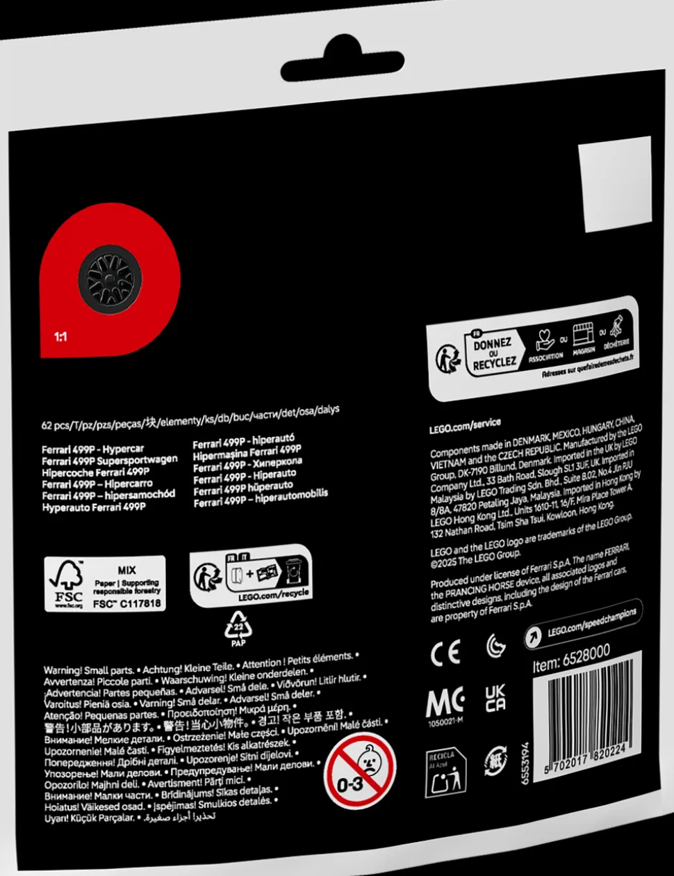 Ferrari-fans og barn fra sju år kan bygge, stille ut og arrangere billøp med denne klossemodellen i miniatyr av den berømte hyperbilen Ferrari 499P.