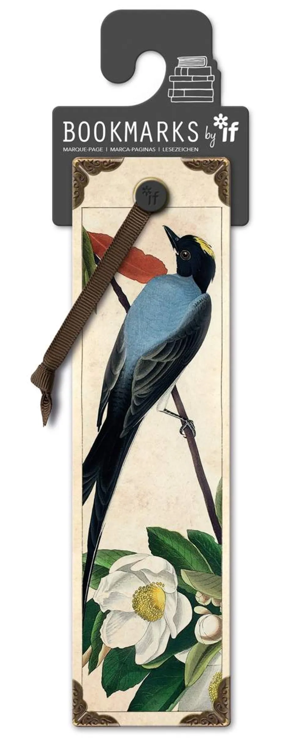 Vintage «Flycatcher» bokmerke i kraftig kvalitetskartong med tekstilbånd. Bokmerket er trykket på FSC MIX Paper C134008.