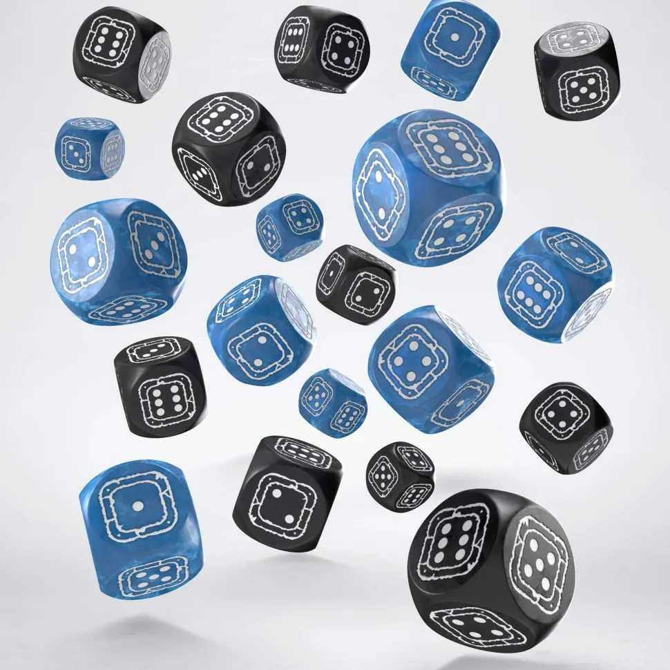 When the game calls, you’re prepared! Here’s something handy: the Fortress Compact D6, a pack of 20 dice divided into groups by distinctive background colors: Black & Blue! The engravings are white on all the D6. All the D6 share the size of 14mm in diameter and the design – the reinforced wall frame with the classic dots inside of it. Perfect for any game, anytime, anywhere!