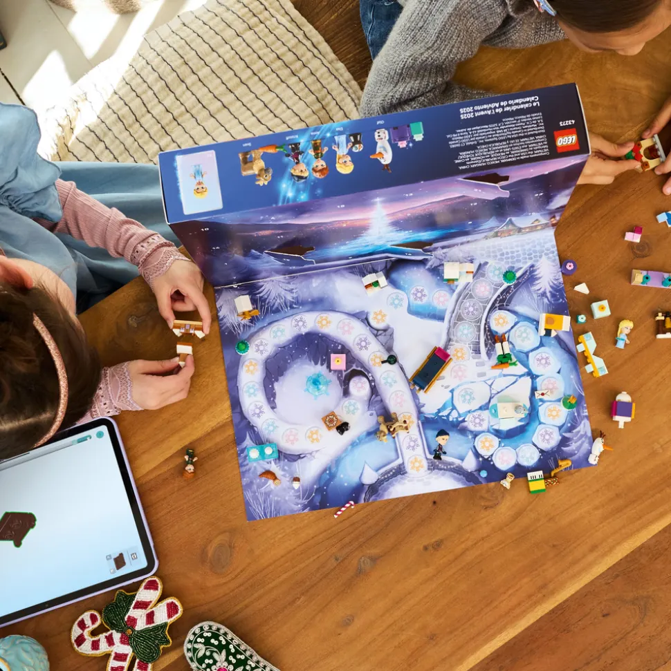 Når den gøyale byggingen er ferdig, kan esken brukes som brettspill, hvor barn blir tatt med på et spennende eventyr med figurene for å samle skatter til julen. Barn får adventsmoro hver dag og kan kose seg med kjente Disney Frost-figurer, LEGO kreativitet og en juletid full av gøyale, byggbare detaljer.