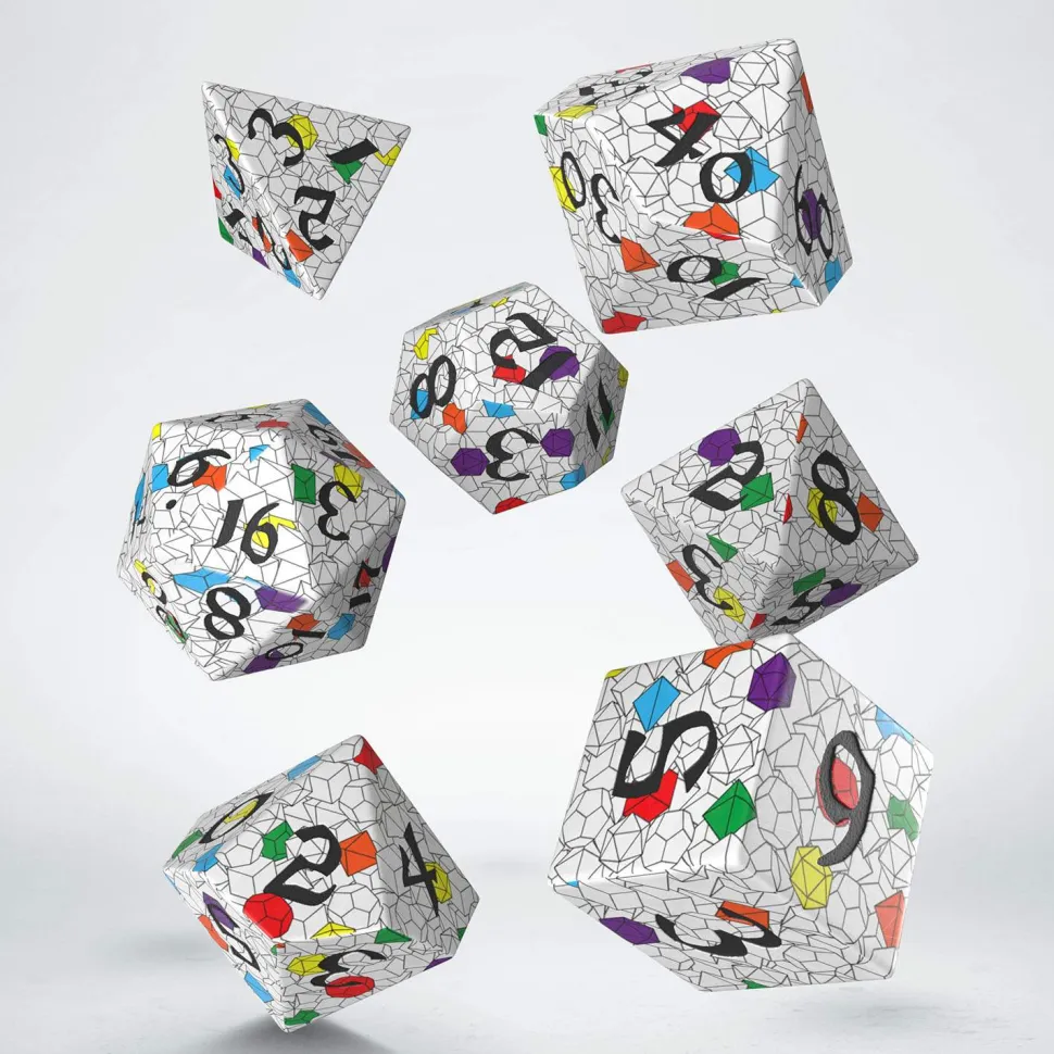 Step into the essence of creation, where geometry becomes art! We created this innovative set as a tribute to the origins of dice themselves — a celebration of the polyhedral form that defines tabletop worlds. Designed to break visual boundaries, these vivid, colorful dice are not limited by the edges. Each roll feels like tracing the blueprint of destiny, connecting every angle of chance and creativity.