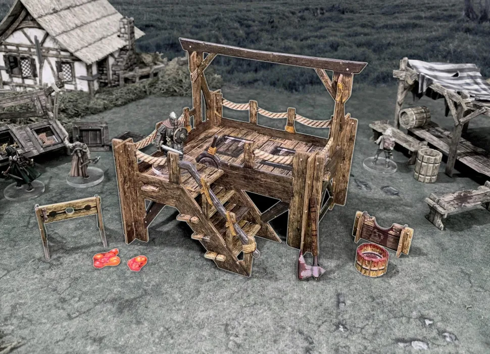 The terrain is supplied flat-packed on high-quality, high-density card, printed in full colour on both sides, so no painting required! The terrain requires assembly, and some smaller parts will require glue.