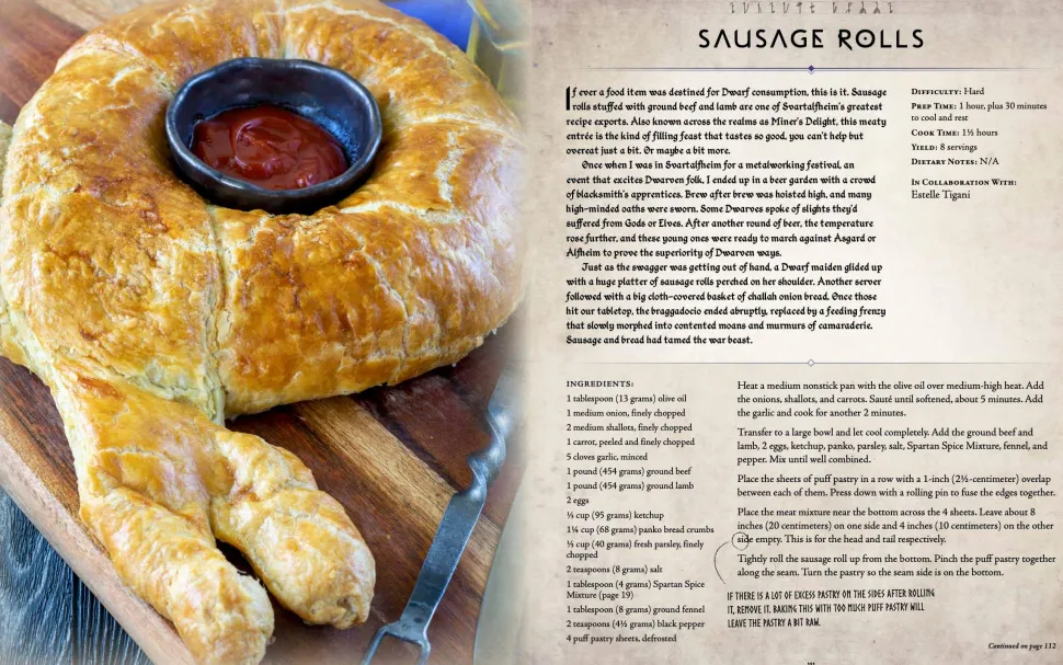 • Recipes for every step of your journey. From quick snacks you can enjoy before heading into battle to decadent desserts and meals fit for divine tastebuds, this book contains recipes for both simple and celebratory fare. Plan your own celebration fit for the gods―or just bring some fresh-baked dwarven bread to your neighbor―this tome has everything you need to plan your own culinary adventure.