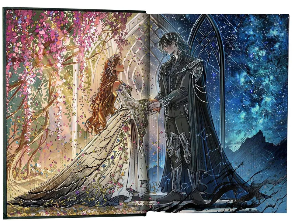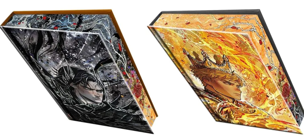 True love knows no bounds. This premium, dual-sided volume includes two complete novellas bound together to create one can’t-miss collector’s item. The first novella—told from Grim’s perspective—gives readers insight into his past: the motivations and events that cemented his fate as Isla’s eventual love interest. The second is narrated by Oro and offers a window into his complex identity: that of a king torn between desire for justice and passion for the woman he loves more than anything. Grim and Oro: Dueling Crowns Edition includes key moments from the rulers’ love stories with Isla, expanded upon in their own voices.