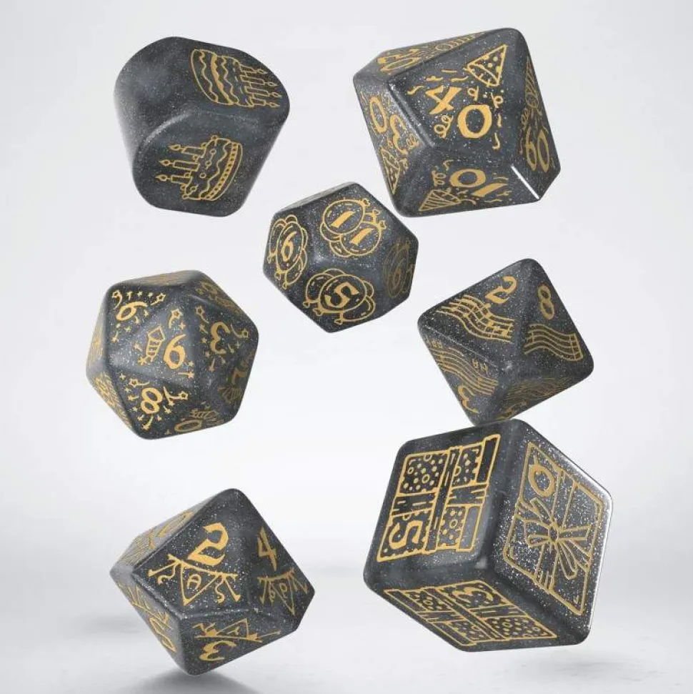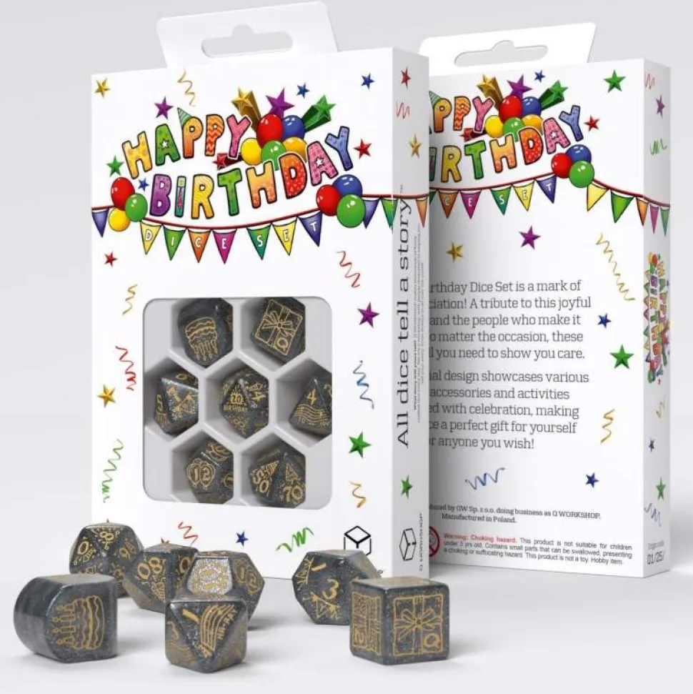 Turn every dice roll into a celebration with Q WORKSHOP’sHappy Birthday Dice Set Confetti, a shimmering-gray masterpiece with golden engravingsIt’s designed to make a great gift and bring the joy of celebration straight to your tabletop. Each dice is adorned with festive elements—birthday cake, confetti, balloons, fireworks, and musical notes—capturing the essence of a perfect birthday party.