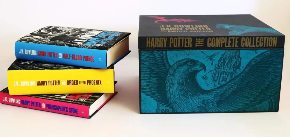 Contains (in reading order): Harry Potter and the Philosopher’s Stone, Harry Potter and the Chamber of Secrets, Harry Potter and the Prisoner of Azkaban, Harry Potter and the Goblet of Fire, Harry Potter and the Order of the Phoenix, Harry Potter and the Half-Blood Prince, and Harry Potter and the Deathly Hallows.