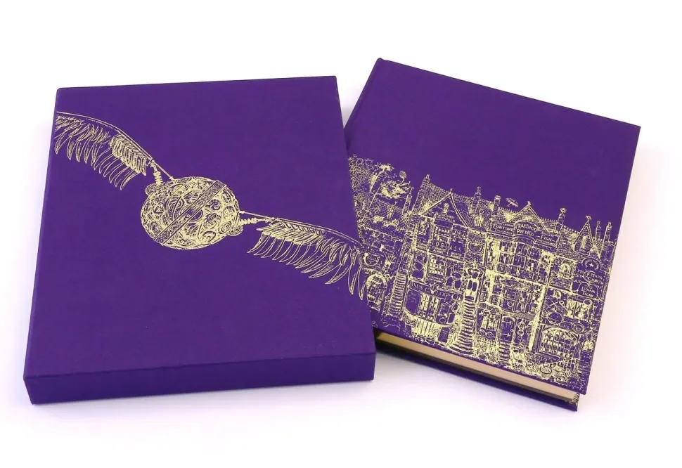 This beautiful, deluxe edition of J.K. Rowling’s timeless classic features an opulent page size and an exclusive pull-out double gatefold of Diagon Alley; intricate foiled line art by Jim Kay on the real cloth cover and slipcase; gilt edges on premium grade paper; head and tail bands and two ribbon markers – the ultimate must-have edition for any fan, collector or bibliophile.