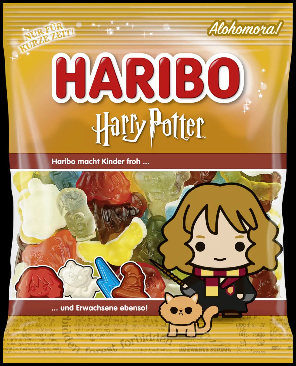 Magisk morsomt og godt gelegodteri fra Haribo. Denne limited edition utgaven inneholder gelé og skum godteri formet som ikoniske ting fra Harry Potter universet.