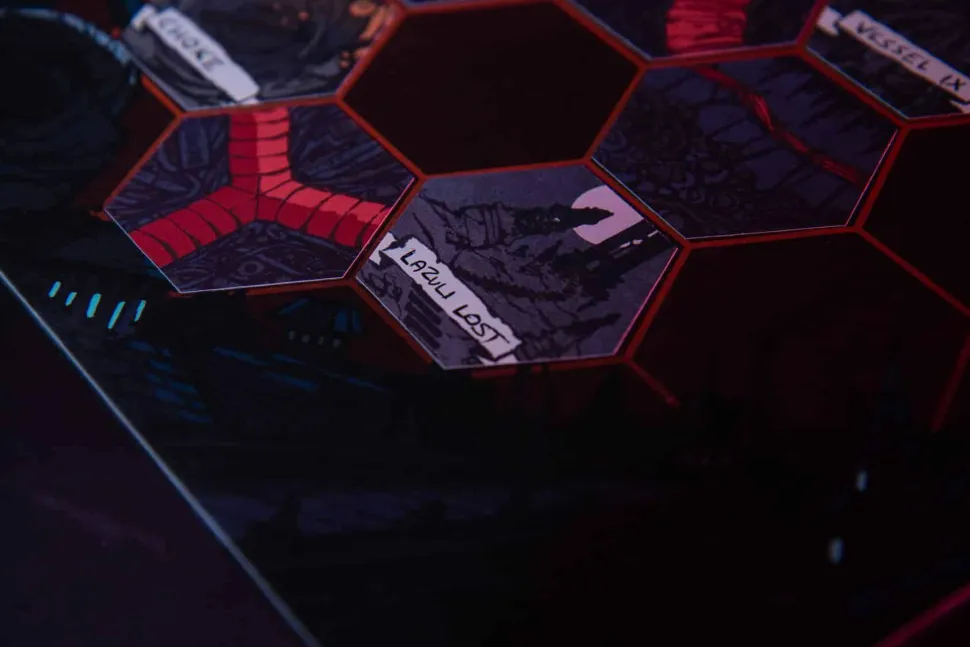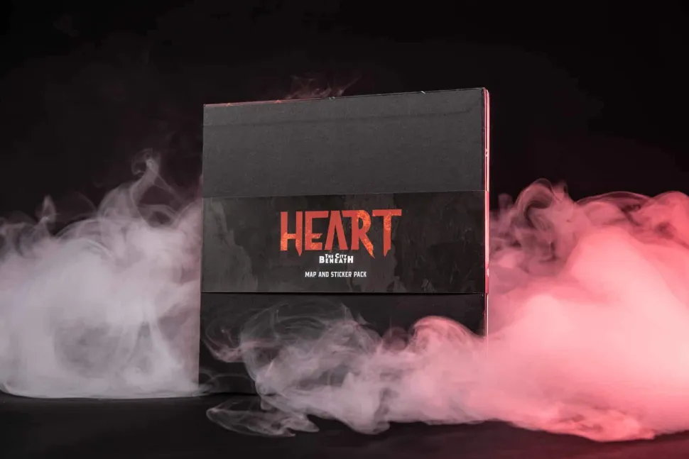 Plot your journey into the City Beneath with this beautiful fold-out hex-map and sticker set illustrated by Heart artist Felix Miall. The map itself is large enough to run several campaigns on (assuming you don’t mind revisiting old landmarks to see how they’ve changed and evolved) and the stickers allow your group to make their own version of the Heart with ease.