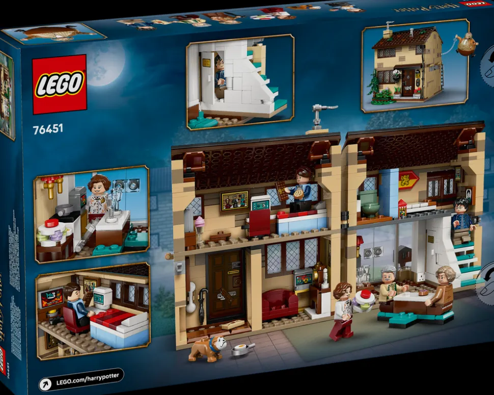Gjenopplev tante Margots besøk i Hekkveien 4 fra filmen Harry Potter og fangen fra Azkaban™ med dette LEGO® Harry Potter™ lekesettet for samlere (76451). Det byggbare huset er en detaljert kopi av Dumling-familiens hus og vinterhage, og det kan åpnes for enkel adgang til interiøret. Kjøkken-/spiseområdet har et uttakbart bord, det er en hemmelig dør bak på huset, som går til Harrys gamle rom i skapet under trappen. Vinduet i Harrys nye rom har stenger som kan fjernes, slik at han kan rømme. Settet inkluderer også mange andre autentiske detaljer som inspirerer til kreativ lek.