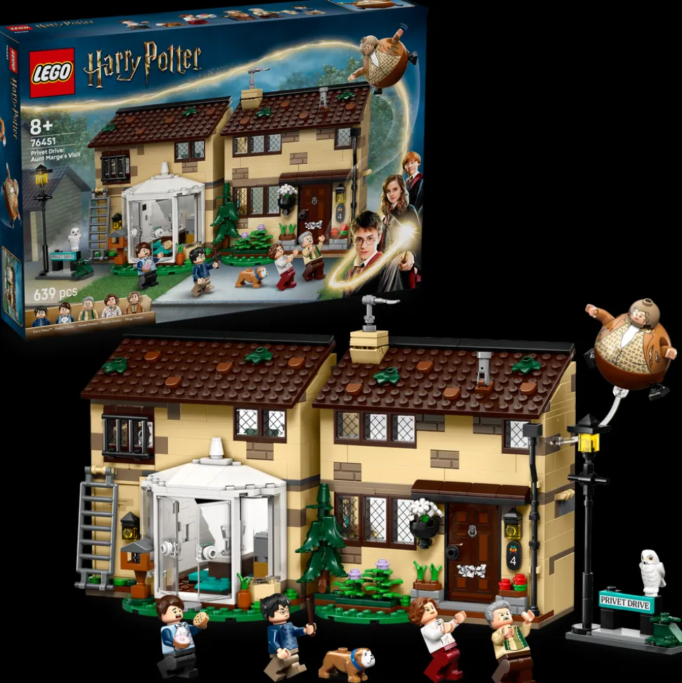 Dette fantasy-lekesettet er en magisk jule- eller bursdagsgave til jenter, gutter og alle fans fra åtte år. Det inneholder fem LEGO Harry Potter minifigurer og en figur av hunden Glefs. Lekesettet inneholder også en oppblåst versjon av tante Margot, som barn kan bruke for å gjenskape den gøyale filmscenen, hvor Harry bruker en trylleformel som blåser henne opp som en ballong, samt en sidemodell med «Privet Drive»-skilt og lyktestolpe.