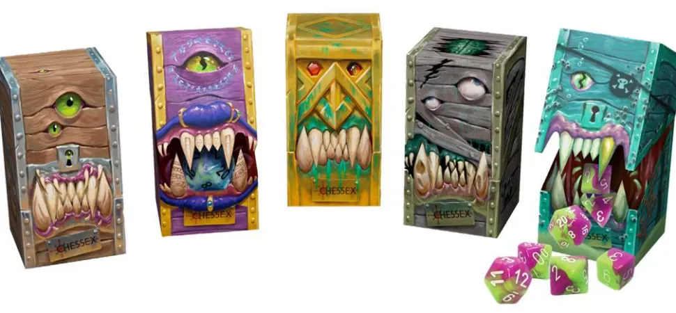 If you’re brave enough to go toe to toe, or tooth to tooth, with these monsters you will be rewarded with not only excellent dice, but also a fun mimic puppet as a trophy of your triumph!
